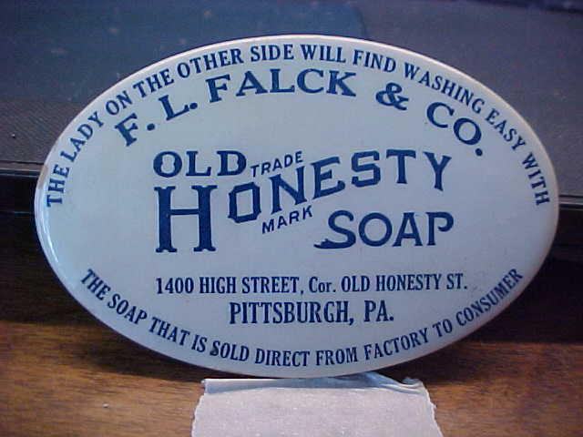 Title (ebay affiliate link): PA Pittsburgh OLD HONESTY SOAP F L FALCK Celluloid Advertising Pocket Mirror