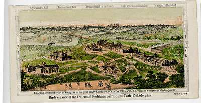 Title (ebay affiliate link): Birds Eye View Centennial Buildings Fairmount Park PA 1880''s Trade Card