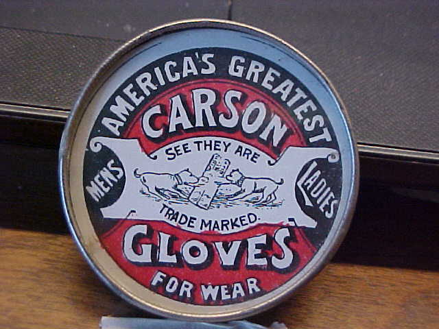 Early Vintage CARSON GLOVES Advertising Pocket Mirror
