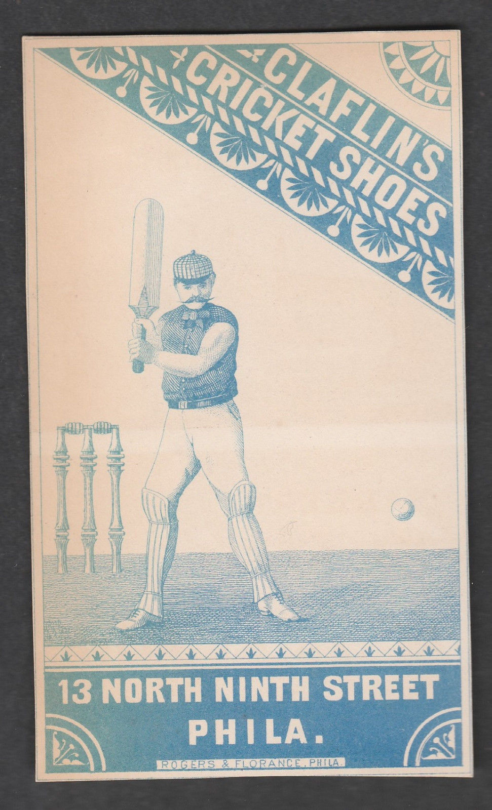 VICTORIAN TRADE CARD CLAFLINS CRICKET SHOES PHILADELPHIA PLAYER