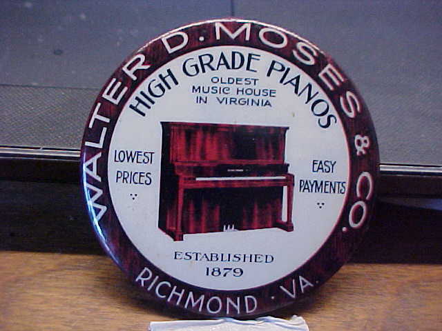 Title (ebay affiliate link): VA Richmond WALTER D MOSES & CO High Grade Pianos Advertising Pocket Mirror #2