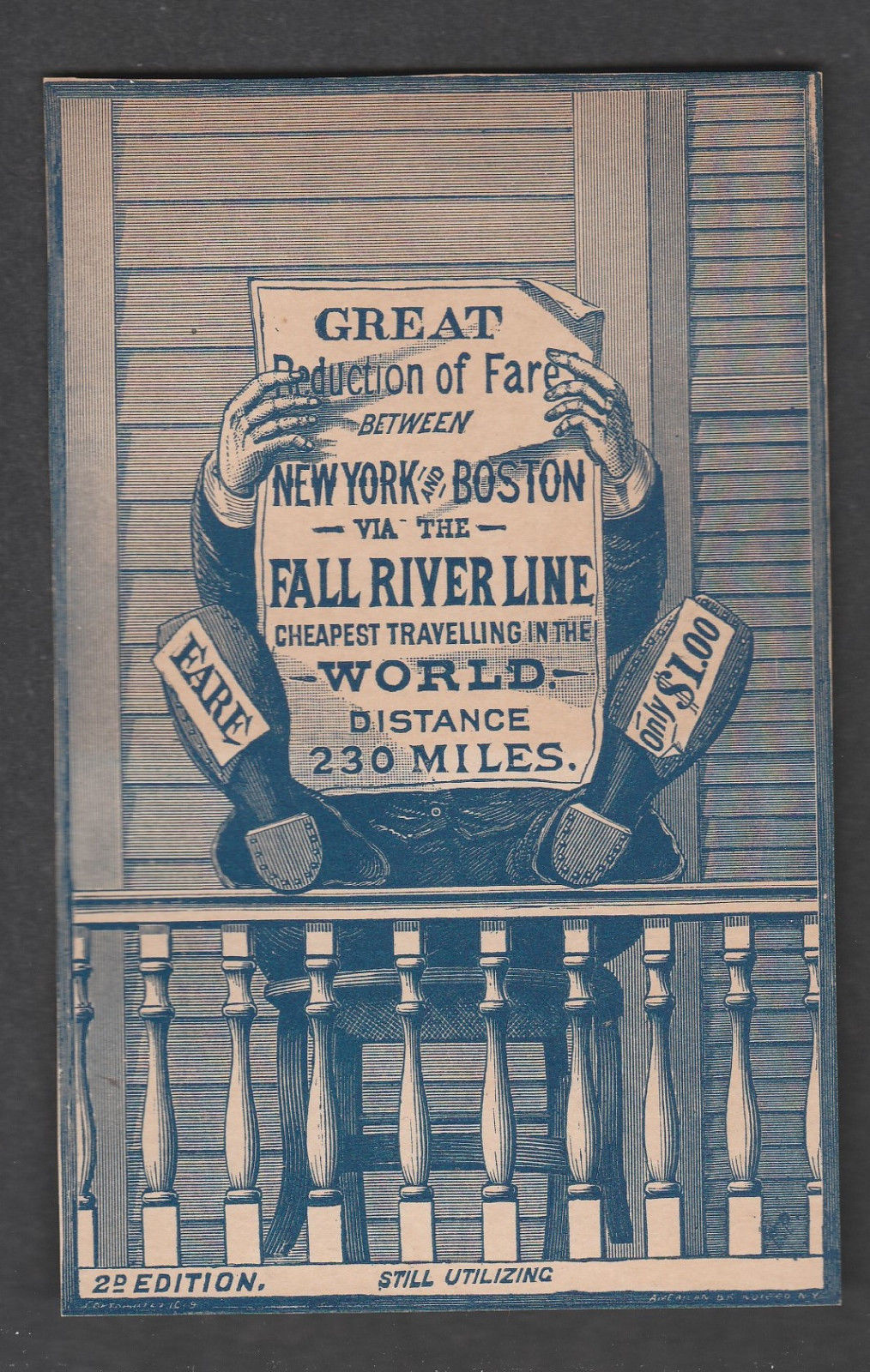 VICTORIAN TRADE CARD RAILROAD FALL RIVER LINE FARE REDUCTION