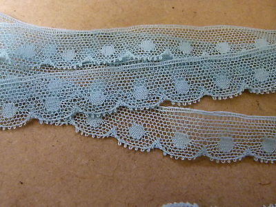Antique Pale Blue 100% cotton Lace Trim over 80 years old dolls dress triming 4y