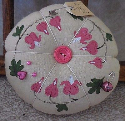 Title (ebay affiliate link): Primitive BLEEDING HEART Pin Keep Handpainted Summer Ornament Pin Cushion