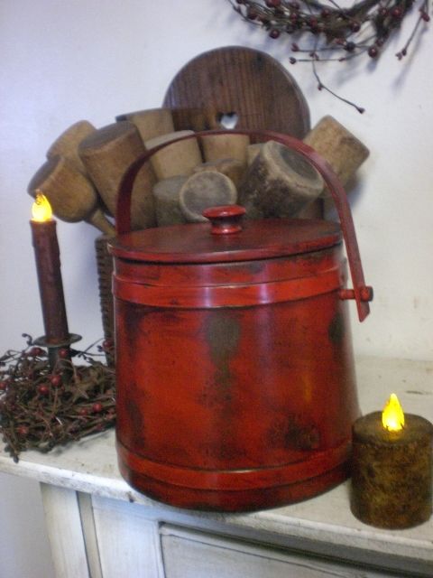 Title (ebay affiliate link): Primitive Wooden Red Bucket ~ Wood Sugar Bucket