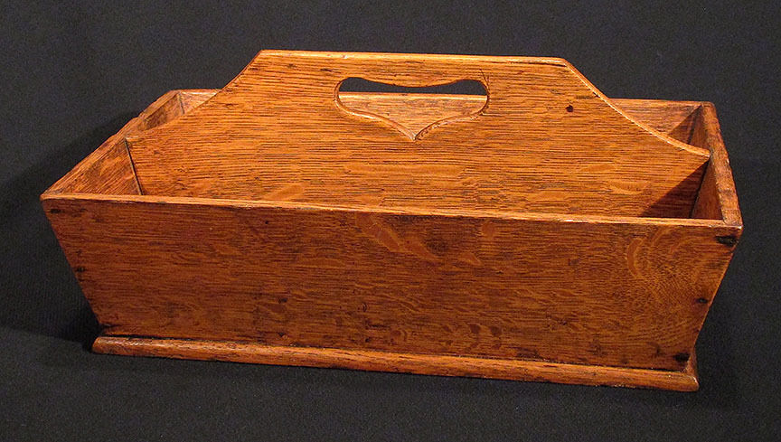 Title (ebay affiliate link): 1800s Antique KNIFE CUTLERY TRAY CARRIER Caddy Oak Wood Heart Cutout Folk Art NR
