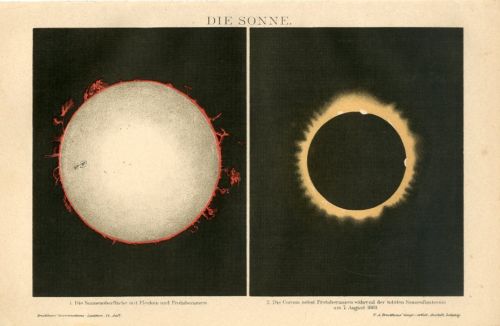 Title (ebay affiliate link): 1894 SUN TOTAL SOLAR ECLIPSE SOLAR PROTUBERANCES Antique Chromolithograph Print
