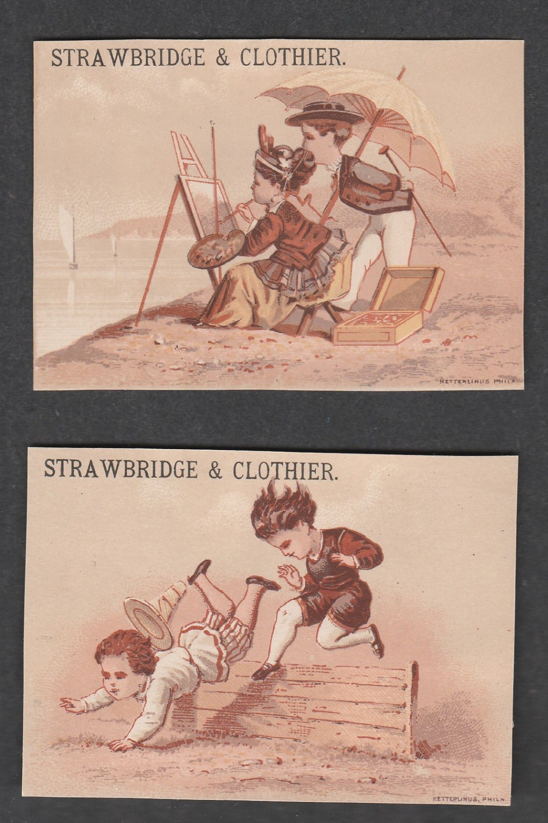 VICTORIAN TRADE CARD PAIR (2) STRAWBRIDGE & CLOTHIER KIDS