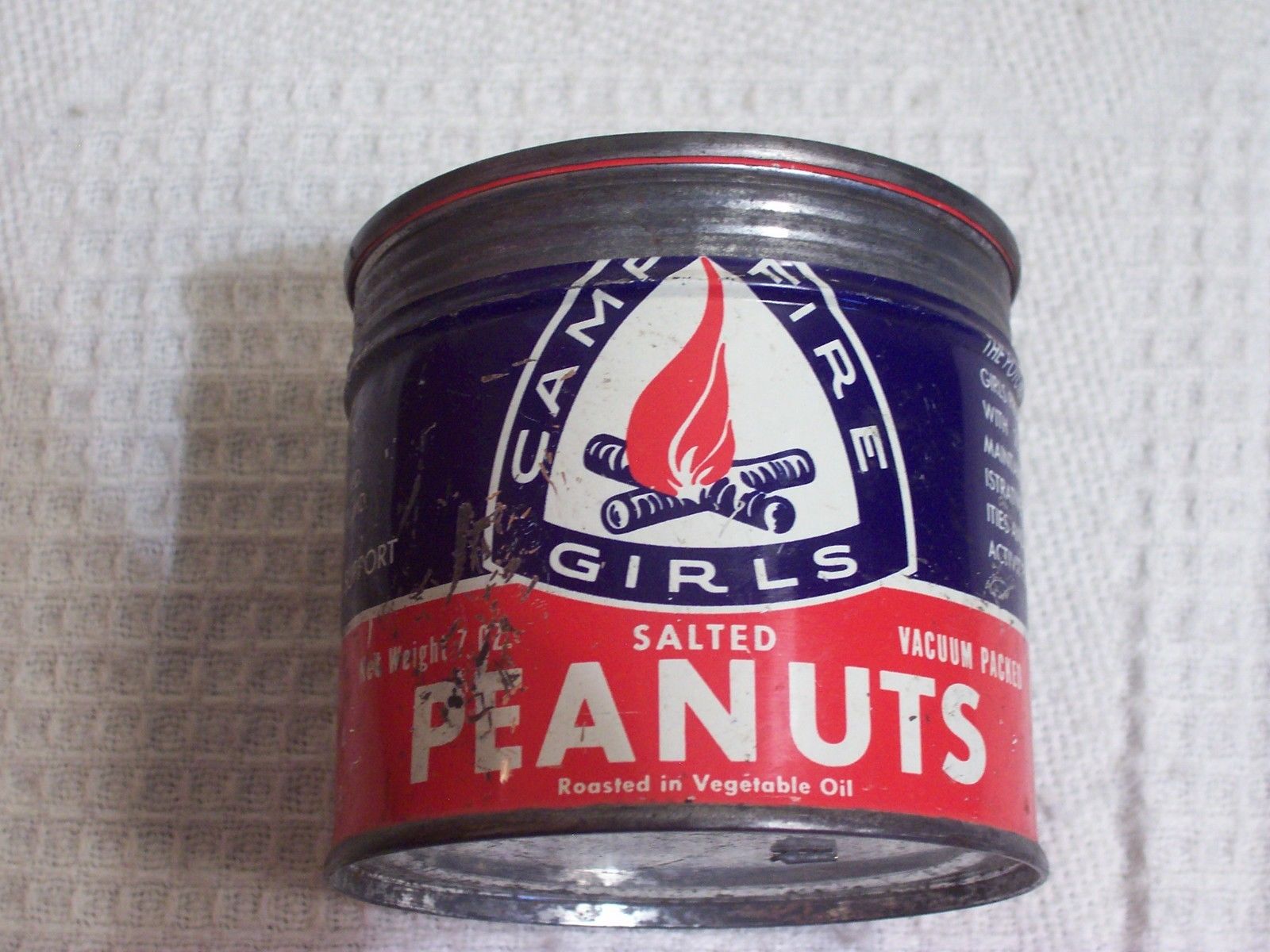 VINTAGE CAMPFIRE GIRLS SALTED PEANUTS CAN WITH METAL LID