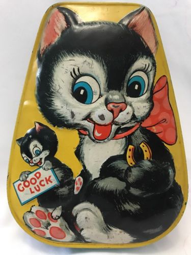 Title (ebay affiliate link): Vintage George W. Horner made in England sweets tin great patina finish Blk Cats