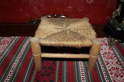 Antique Wood & Rope Footstool Ottoman Primitive French Farmhouse Country Stool
