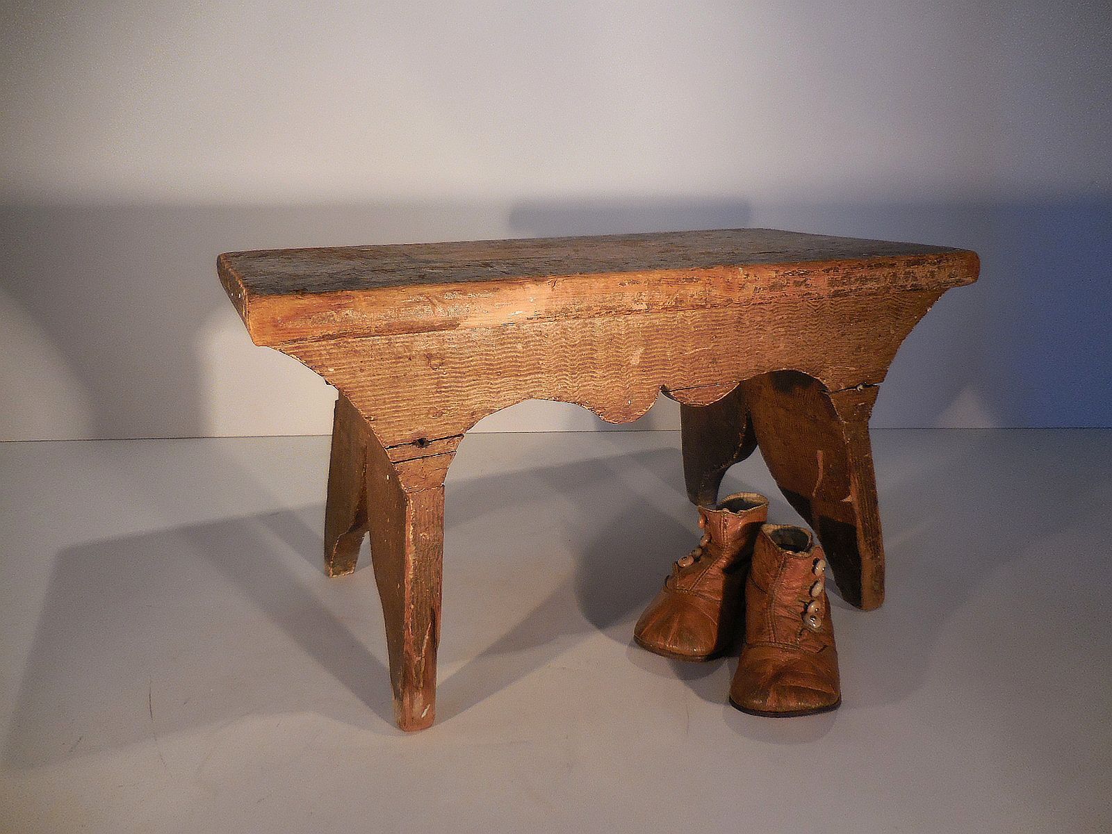 Title (ebay affiliate link): AAFA 19th c Paint Decorated Footstool Cricket Bootjack Ends