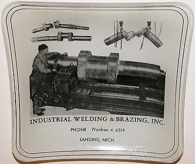 Vintage glass ashtray INDUSTRIAL WELDING and BRAZING with pic Lansing Michigan