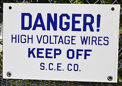 Vintage DANGER HIGH VOLTAGE WIRES KEEP OFF S.C.E. CO. Original Porcelain Sign