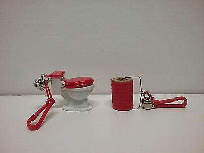 Vintage Toilet Bowl &Toilet paper roll 1980''s Retro Plastic Bell Clip Charm