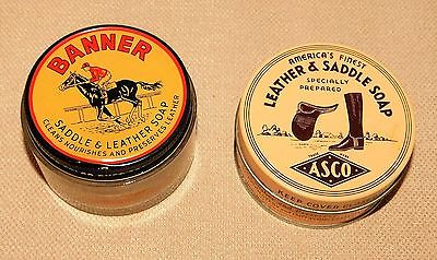 2 vintage Leather & Saddle Soap Containers-ASCO & Banner