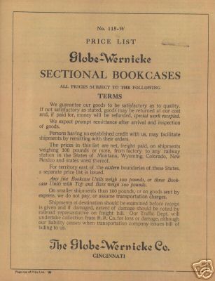 RARE1915 GLOBE WERNICKE SECTIONAL BOOKCASE PRICE LIST