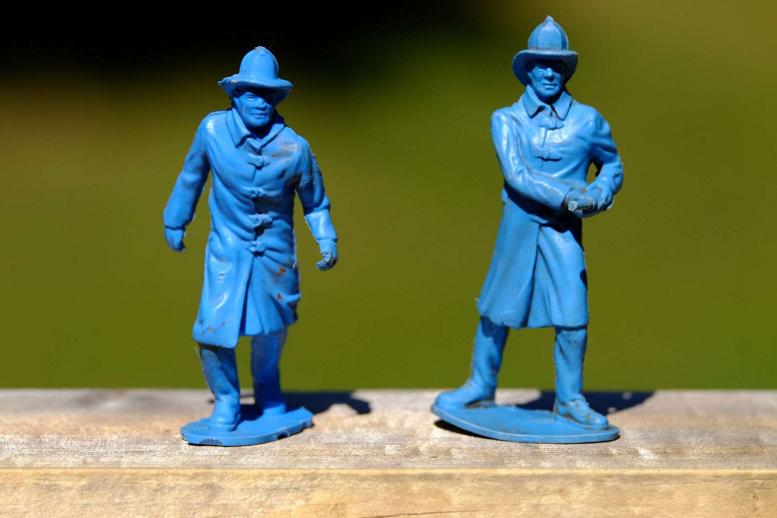 Title (ebay affiliate link): Lot of 2 Vintage Auburn Toy Fireman Figures Blue Rubber Firefighter for Play Set