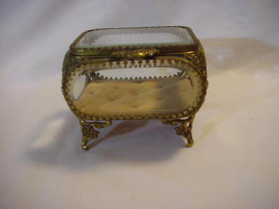 Antique Ornate Glass Trinket Jewelry Dresser Box