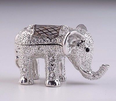 Title (ebay affiliate link): Silver Elephant Faberge Trinket Box by Keren Kopal with Austrian Crystal