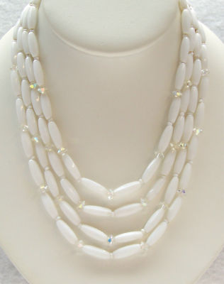 VTG Milk Glass AB Crystal Bead Multi Strand Necklace