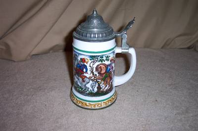 BMF Bierseidel West Germany Milk Glass Pewter Lid