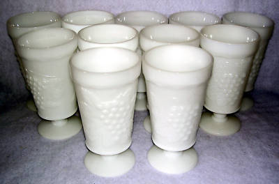 11 Anchor Hocking Footed Milk Glass Grape & Leaf Goblet