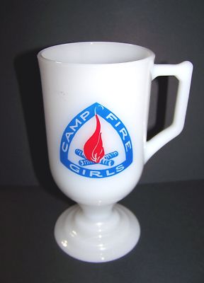 RARE CAMP FIRE GIRLS Footed milk glass Coffee MUG Cup