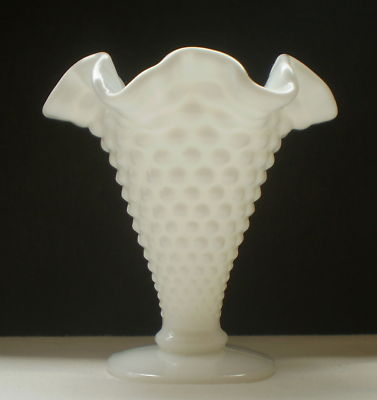 FENTON MILK GLASS HOBNAIL VASE ~ Stamped