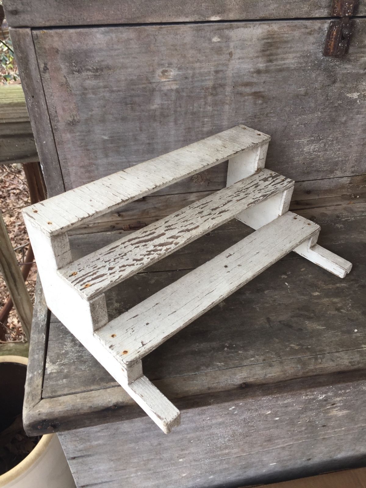 Title (ebay affiliate link): Early AAFA Primitive Antique wood Original White Paint Bench stool