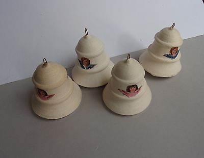 4 ANTIQUE GERMAN SPUN COTTON BELLS CHRISTMAS ORNAMENTS