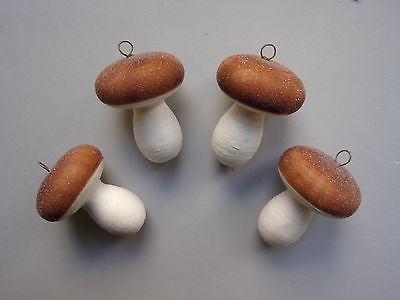 4 VINTAGE SPUN COTTON MUSHROOMS covered with Venetian Dew CHRISTMAS ORNAMENTS