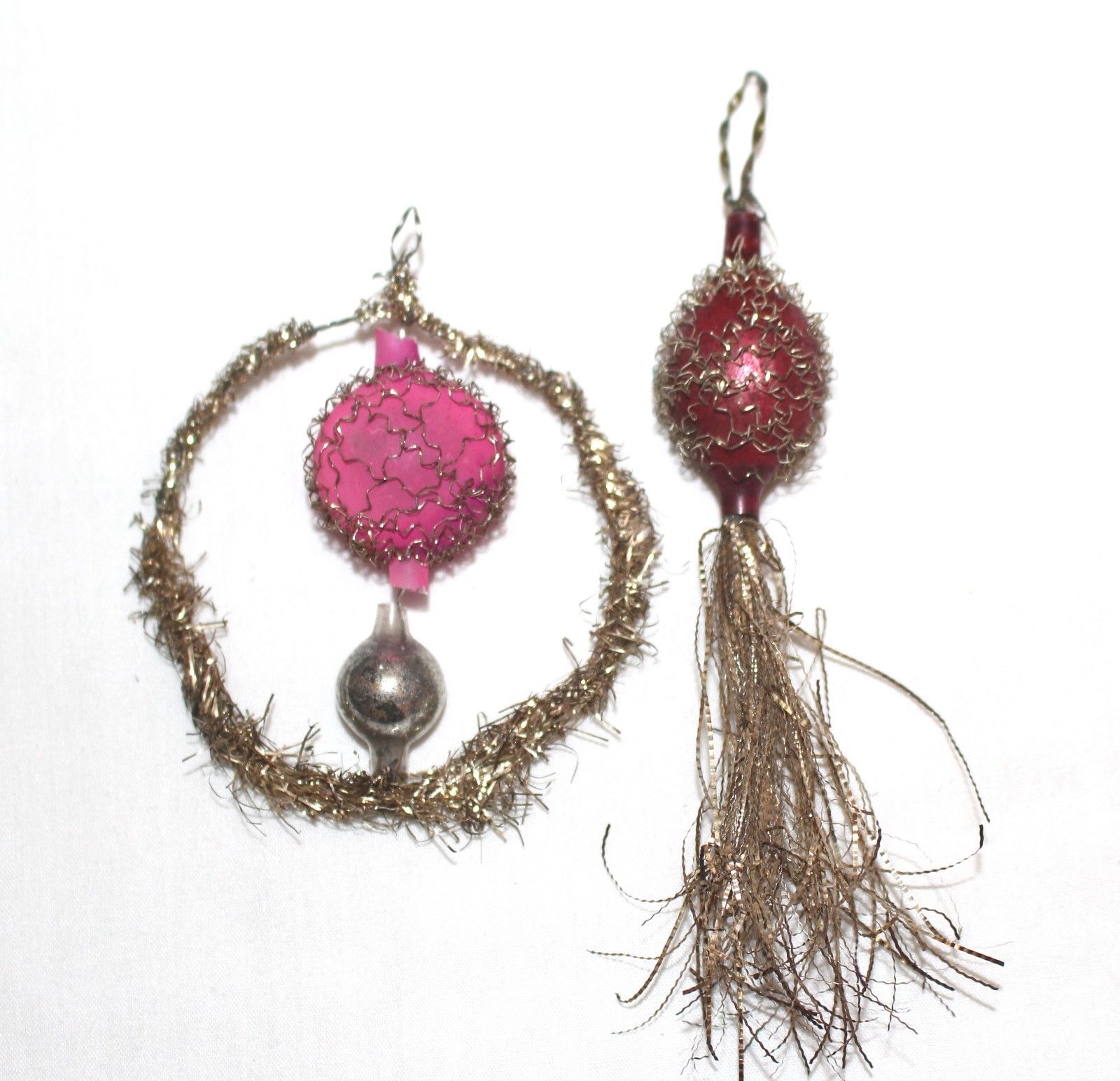 Title (ebay affiliate link): Two Early 1900s Glass Bead and Tinsel Ornaments. Wire-wrapped Beads.