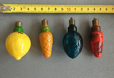 RARITY FIGURAL GLASS CHRISTMAS LIGHT BULBS SET 4