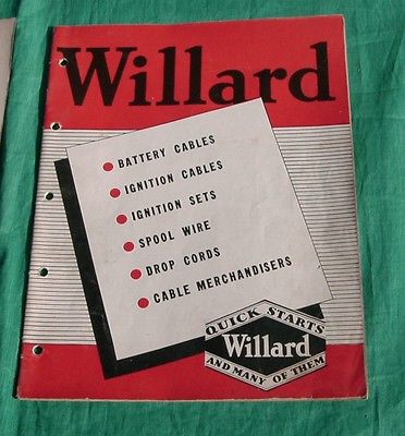 Vintage 1938 Willard Auto Car Catalog Battery & Ignition Cables Spool Wire +