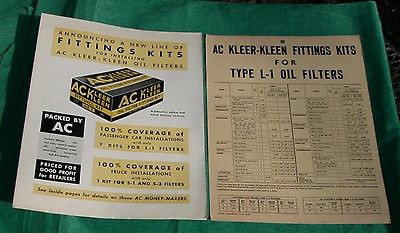 Vintage 30''s AC Kleer Kleen Oil Filters Fittings Kits Auto Car Brochure Card