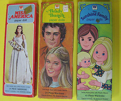 Vintage 1974 Mattel Paper Dolls SUNSHINE FAMILY, BRADY BUNCH, MISS AMERICA bonus