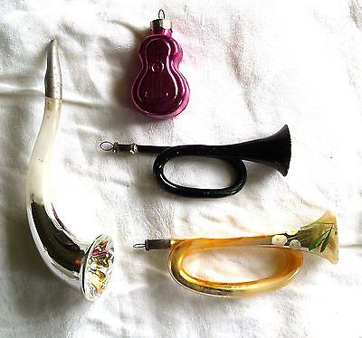 Title (ebay affiliate link): 4 GLASS XMAS ORNAMENTS OF INSTRUMENTS HORNS VIOLIN, 1920-1960