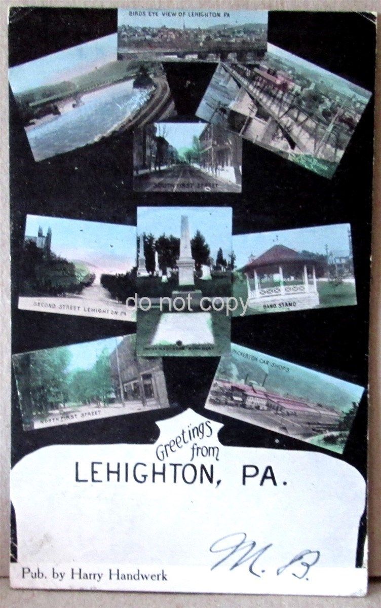 Title (ebay affiliate link): Postcard, Greetings from Lehighton, Pa. Pub. by Harry Handwerk