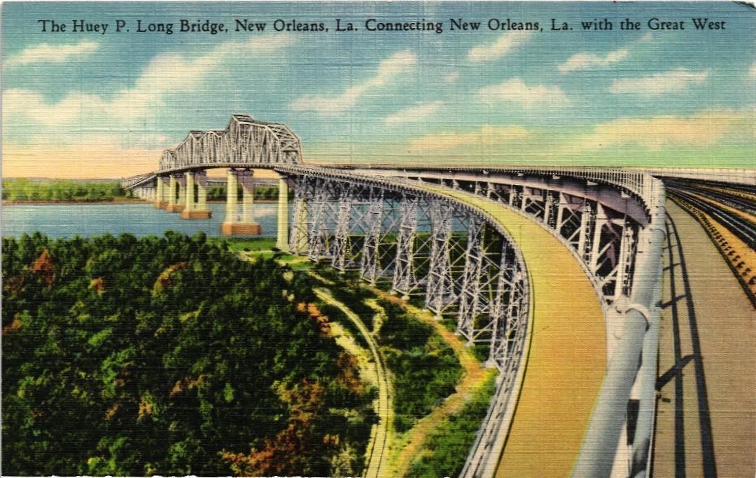 Title (ebay affiliate link): DR JIM STAMPS US HUEY LONG BRIDGE NEW ORLEANS LINEN COLORTONE POSTCARD