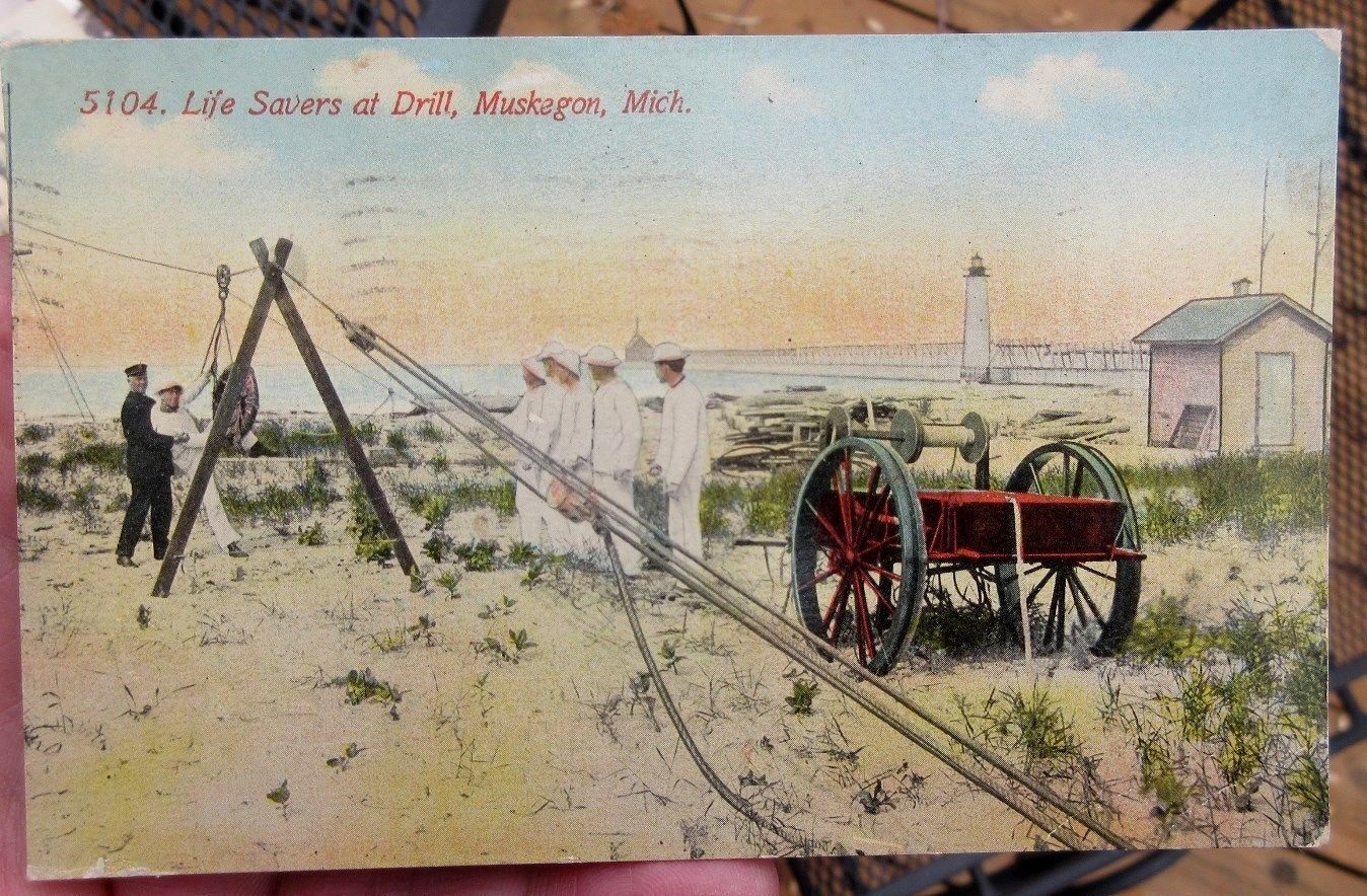 Title (ebay affiliate link): 1911 US LIFE SAVING CREW DRILL AT MUSKAGON, MICHIGAN POSTCARD