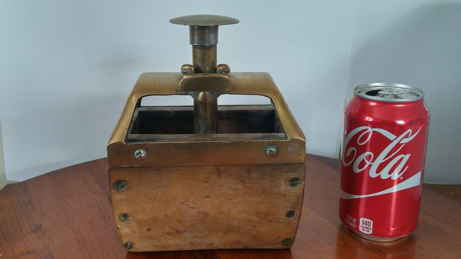 Primitive Wood brass Carved ~ Stamp Print Plunger Butter Mold KITCHEN TOOL
