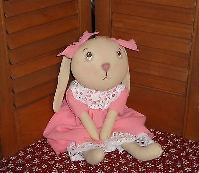 Primitive Springtime Bunny Doll*Coral Pink*White Eyelet Lace*