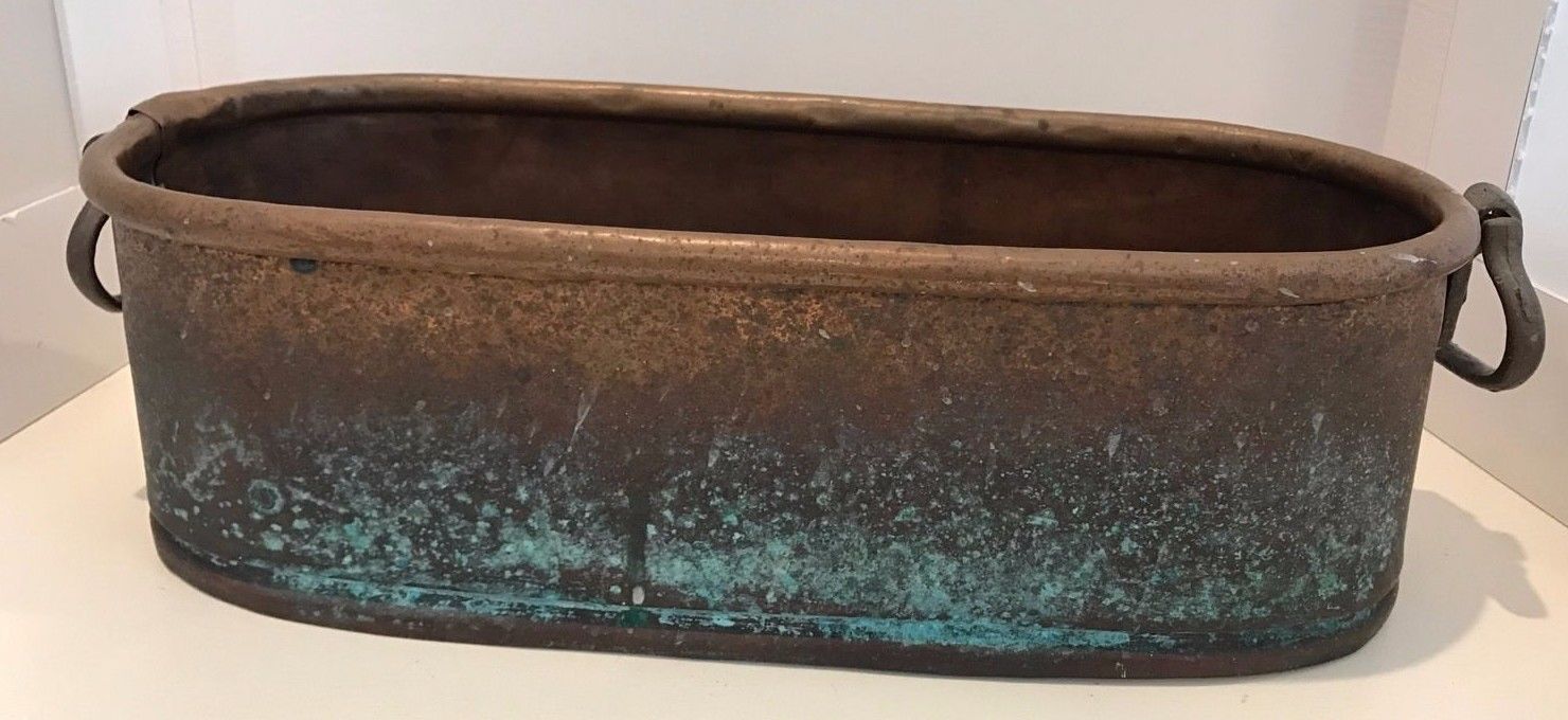 Title (ebay affiliate link): LARGE OVAL SOLID COPPER PLANTER TUB BIN BUCKET Container w/ HANDLES 17" LONG