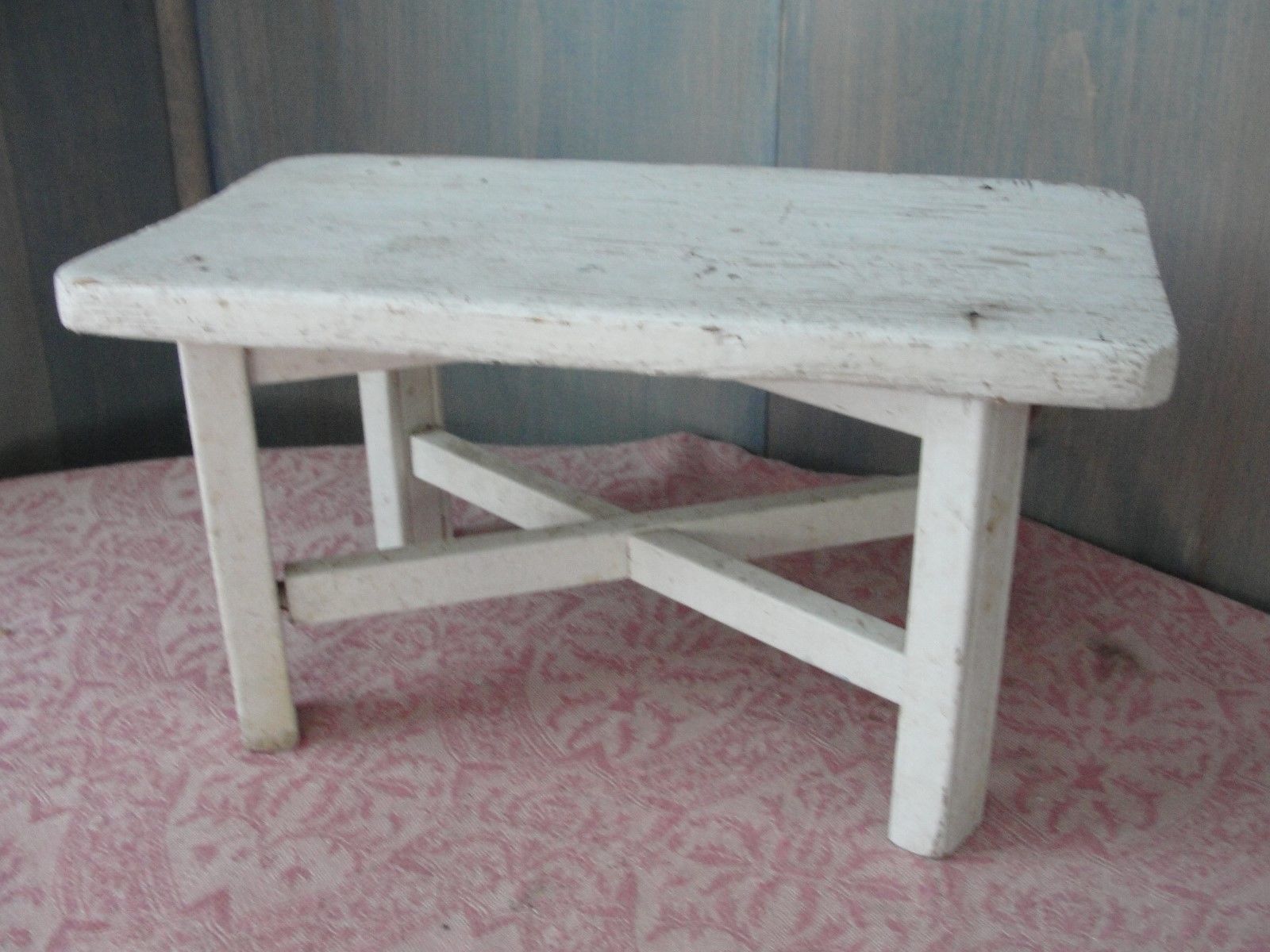 Title (ebay affiliate link): Vintage Antique Small Wood Bench Step Stool w/ White Paint