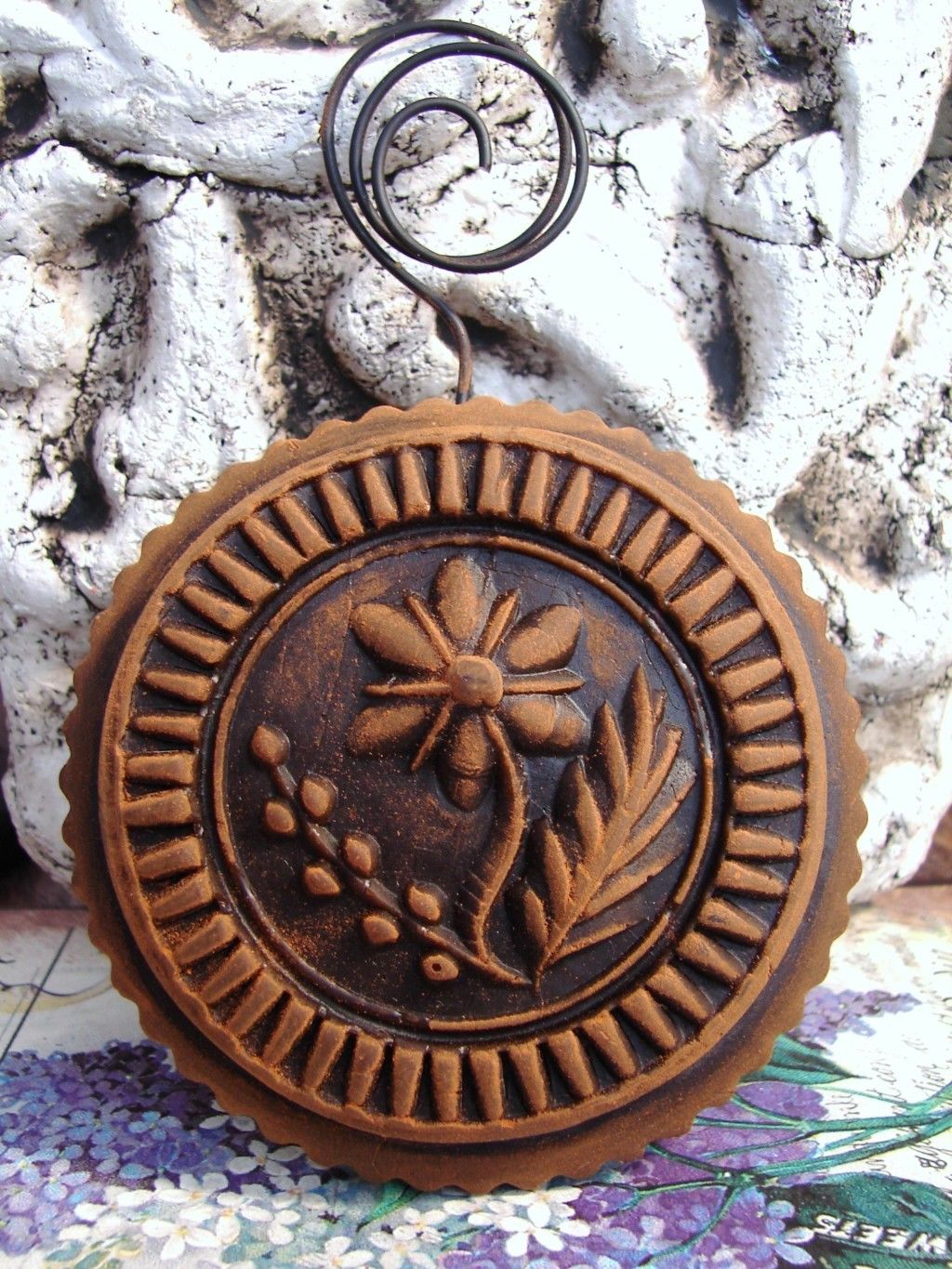 Title (ebay affiliate link): Blackened Beeswax 2 Tier FLOWERED Butter Mold Primitive 1800s Folk Art Black Wax