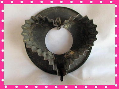 Antique Folky Primitive Tin Cookie Cutter with Crimped HEART Flat Back no handle