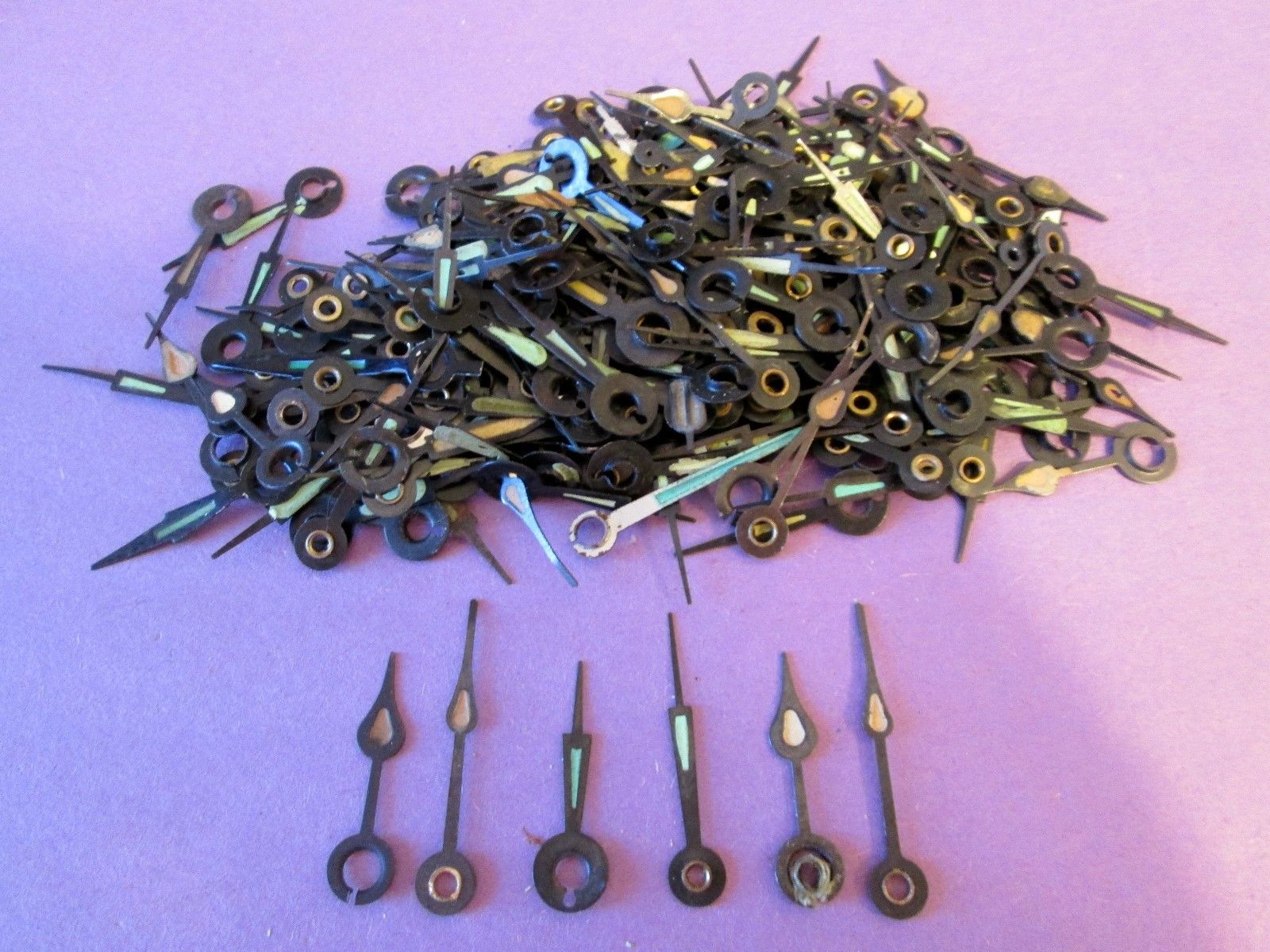 Title (ebay affiliate link): 300 + Assorted Vintage Small Steel Alarm Clock Hands - Steampunk Art