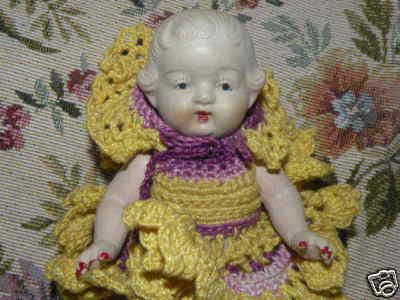 Sweet all bisque antique Doll 5" jointed molded hair NR