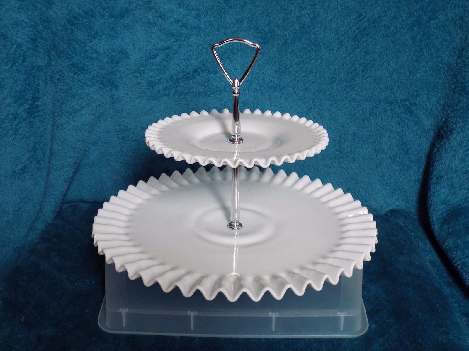 Title (ebay affiliate link): Vintage White Milk Glass Hobnail Fenton: 2 Tier Tidbit Serving Tray Large 12.5"